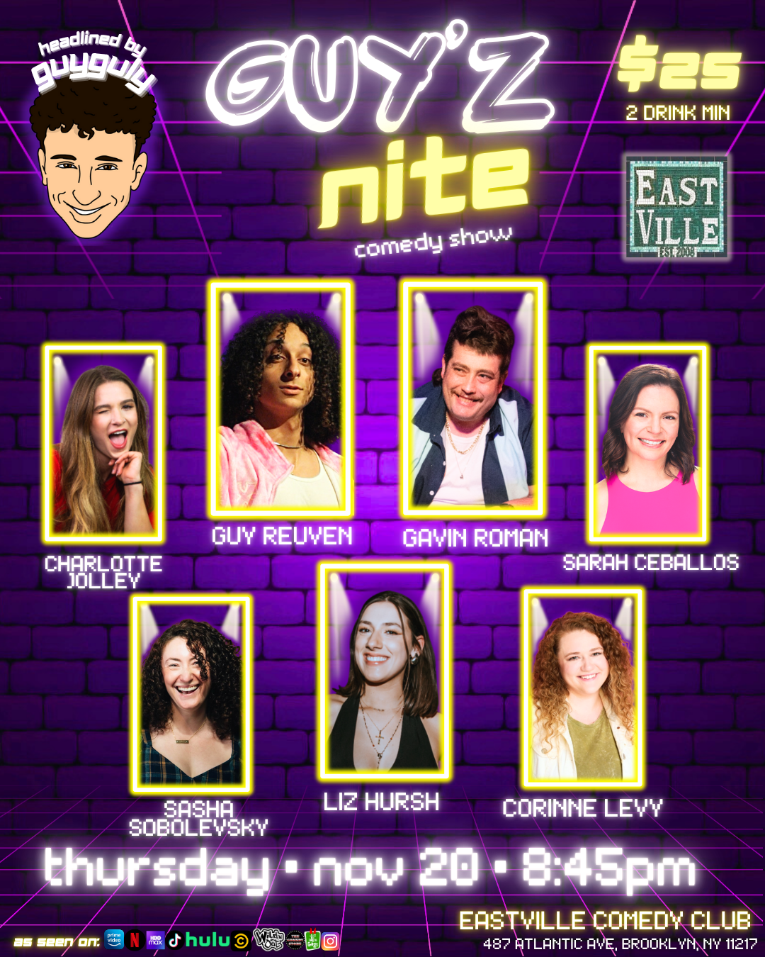 Catch Sarah’s comedy show at Eastville Comedy Club on Thursday, November 20th at 8:45 p.m.